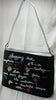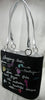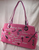 11 X 6 X 3 inches, Star and heart dangle, front laced look design with metal grometts, 4 feet, zipper pulls, inside zippered pocket, 4 pockets total, fully lined. Lettering or designs on any handbags...