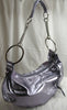 Large 20” X 14”. 6 sliding metal rings accent on shoulder strap, long zipper pull, zippered inside pocket, 4 pockets total, fully lined.