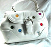 Large Trendy Handbags with Inset Colored Fabric Dots